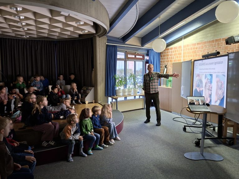 Heute waren Frau Pawlowski und Herr Menn in unserer Aula und erzählten, unterlegt mit viel Bild- und Filmmaterial, wie Igeln jetzt im Spätherbst noch geholfen werden kann. Nun wissen unsere Naturforscherinnen und Naturforscher ganz genau, worauf sie achten müssen, wenn…