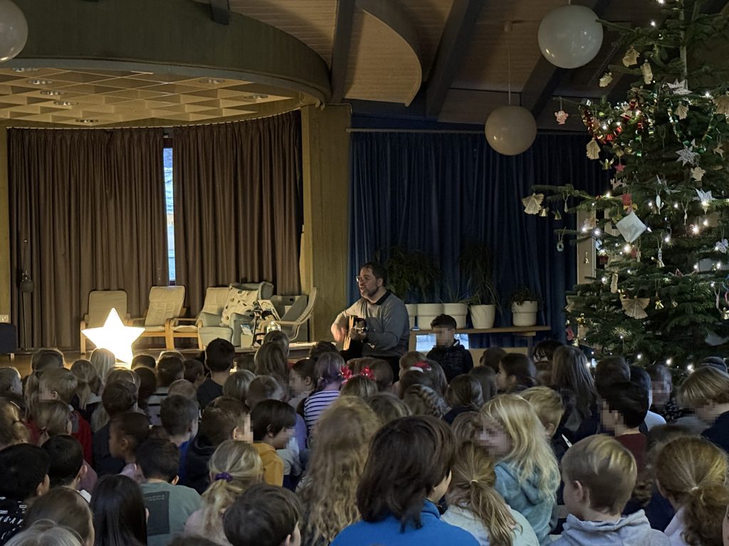 Auch heute haben wir es uns wieder gemütlich gemacht. Heute sangen alle 270 Kinder unserer Schule gemeinsam „Jingle Bells“ (deutsche Strophe, englischer Refrain), „Rudolf. das kleine Rentier“ und „Ich wünsche mir zum heiligen Christ“. Beim letzten Lied sind vor allem die Wünsche „…eine Mutter, die keine Fragen stellt“ und „…ein Freund, der die Klappe hält“ sehr beliebt bei den Kindern 😉